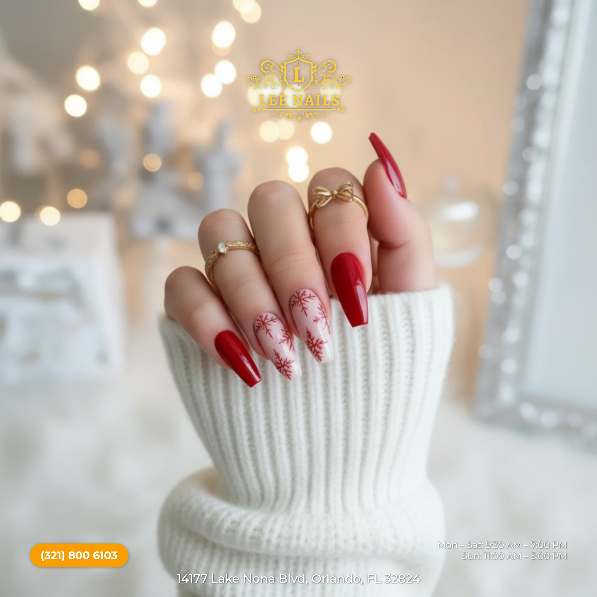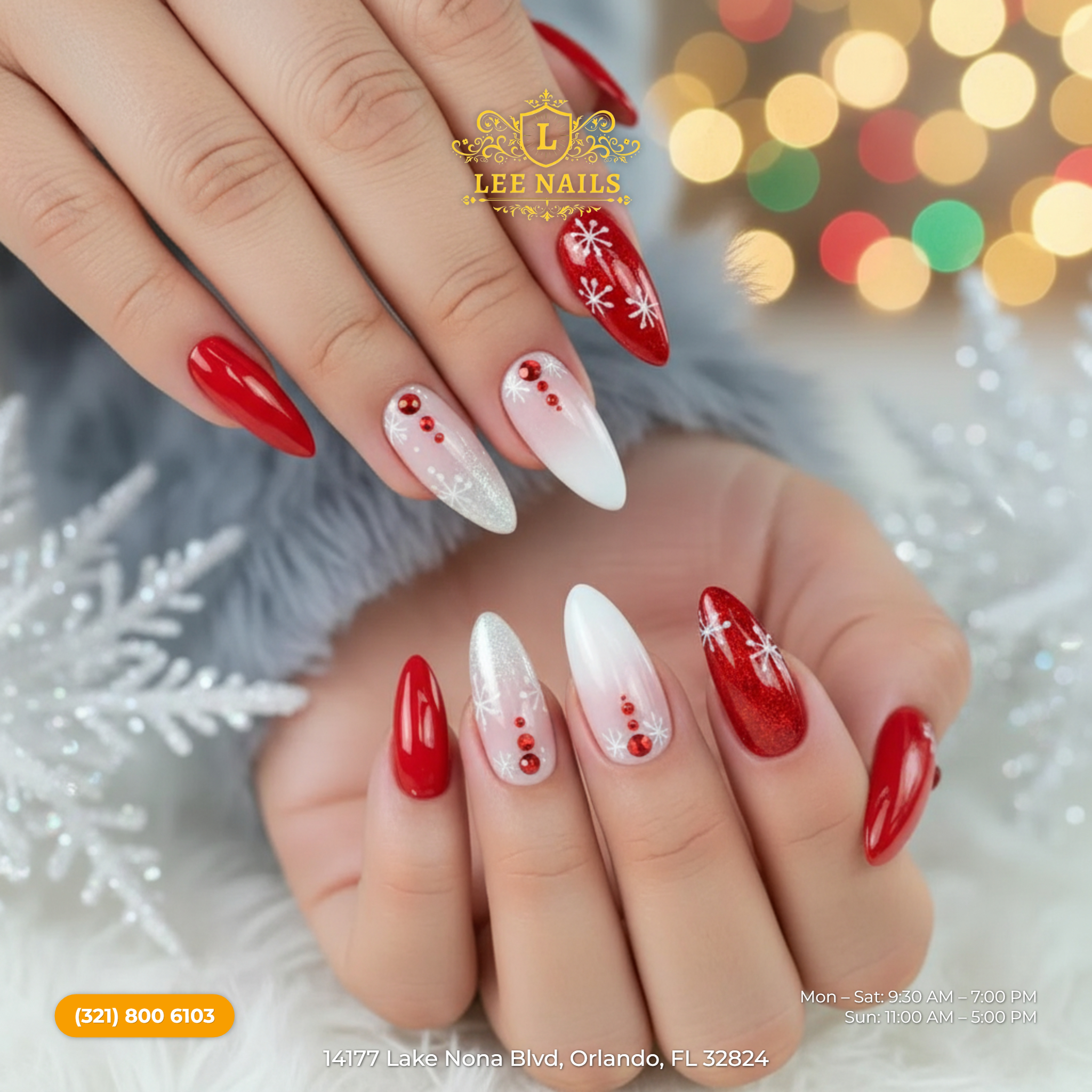 Visit Lee Nails & Spa ( at CreekSide Publix) today at 14177 Lake Nona Blvd, Orlando, FL 32824, United States to enjoy your fulfilled day of pampering.
